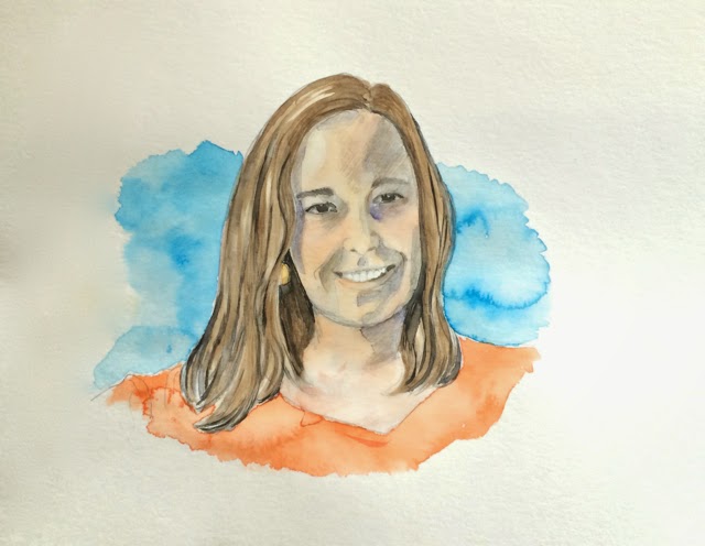 E só depois me lancei à pele. Como é sabido, a pele humana é difícil de representar pictoricamente. Tem muitas tonalidades, é translúcida e presta-se a sombras pesadas e tons pastosos. No caso do óleo, existem cores pré-feitas ("skin tint") que facilitam muito o trabalho, mas no caso da aguarela, tanto quanto sei, não há cores de pele "prontas-a-usar". Usei carmim e amarelo-ocre, com alguns vestígios de "sienna" (mas devia ter sido "umber", talvez, sei lá!) e a coisa foi tropeçando assim: